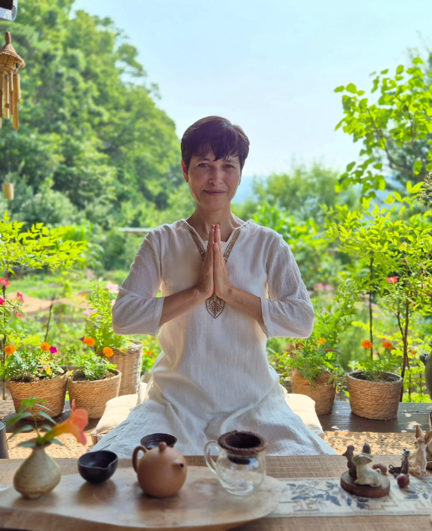 Relaxed teachings in a sacred tea ceremony, connecting soul to soul in presence and unity.